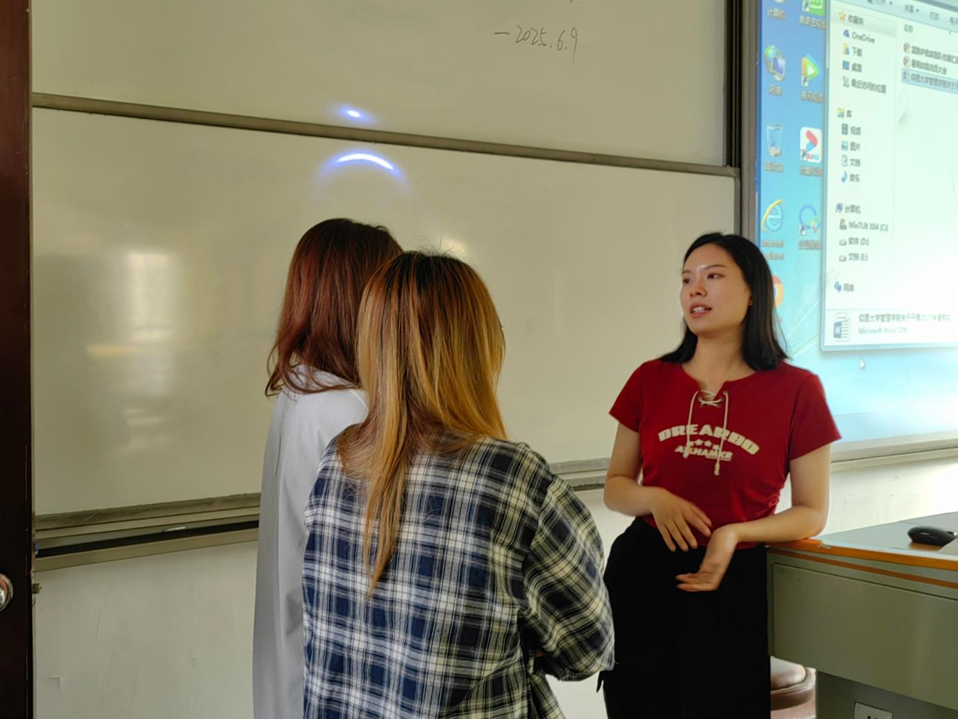 图2 pg娱乐电子游戏官网入口团委书记叶丽香解答实践队成员问题