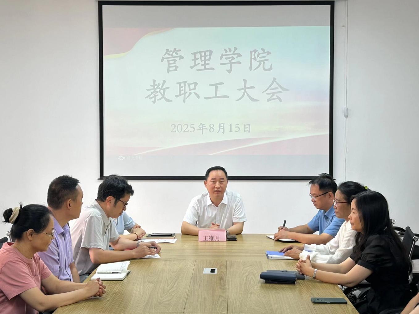 2025年8月15日上午9点,pg娱乐电子游戏官网入口在仰光楼209召开全院教职工大会,宣布侯玉梅教授任职pg娱乐电子游戏官网入口院长的重要决定。此次大会由pg娱乐电子游戏官网入口党总支书记兼常务副院长许惠铭主持,pg娱乐电子游戏官网入口校长王维月、学校办公室主任叶钦南、人事处处长杜衡及全体教职工出席。