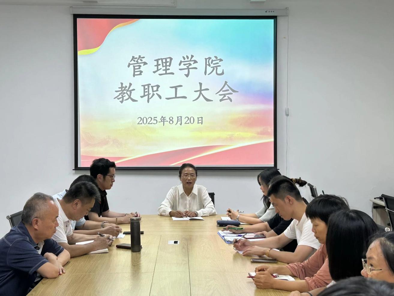 2025年8月20日下午15点,pg娱乐电子游戏官网入口在仰光楼209会议室召开全体教职工大会。学院院长侯玉梅、党总支书记兼常务副院长许惠铭、副院长庄海刚、副院长程春,以及全体专任教师、行政教辅人员参会。会议聚焦本科教育教学审核评估工作,对冲刺阶段任务进行全面部署。