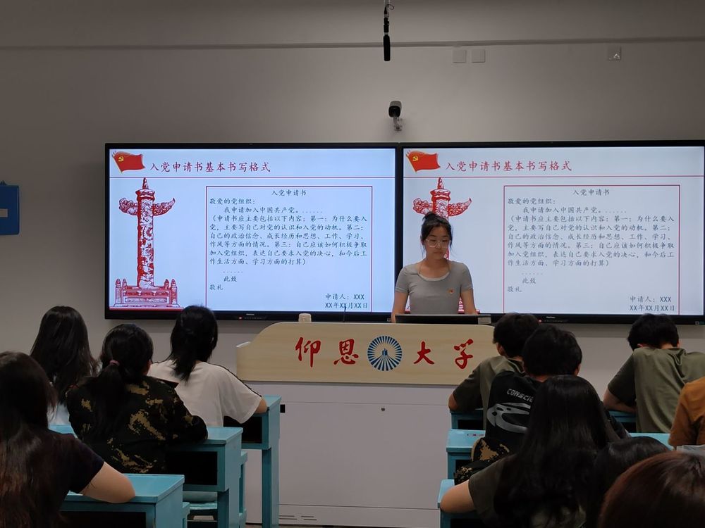 9月16日,市场营销系学生党支部在共和楼教室开展新生入党启蒙教育活动,全体党员参加。
