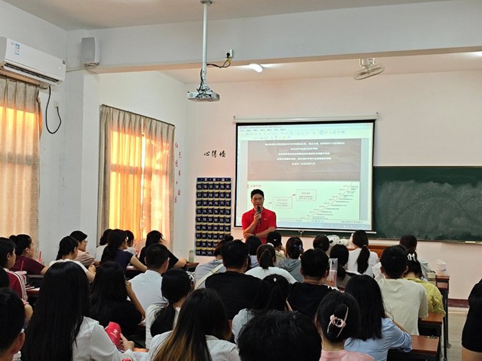 会上,京东物流负责人从企业发展历程、业务布局及行业地位展开介绍,其从传统物流布局到智能物流网络的蜕变,以及凭借先进技术和高效服务在物流领域的重要地位,让学子们深度认知其运营模式与行业价值。同时,负责人重点解读“新锐之星”校招项目,展示管培生培养、岗位晋升、极具竞争力的薪酬福利及完善培训体系,为学子呈现职业成长的广阔图景。