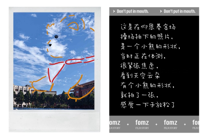 活动依托线上平台开展,吸引了近两百名同学积极参与。本次活动鼓励同学们用镜头捕捉校园上空的云卷云舒,并以涂鸦彩绘的形式为其赋予创意与故事,将内心的焦虑、期待、宁静或喜悦等情绪转化为一幅幅具象的画面。作品附带的创作灵感说明,不仅记录了当下的情绪背景,也展现了同学们对自我内心的深刻觉察。