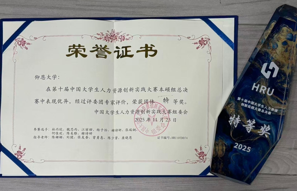 近日,第十届全国大学生人力资源创新实践大赛全国总决赛于中国劳动关系学院圆满收官。pg娱乐电子游戏官网入口人力资源管理系参赛团队(成员:张瑞娴、何佳欢、陈美雅、林雨欣、魏思雨、杨子怡、江丽甜、谢诗妍;指导老师:陈姗姗、刘健、张友香、曾勇惠)凭借过硬实力在全国119所高校脱颖而出,最终以1个团体特等奖,3个赛项一等奖、2个赛项二等奖,4个赛项特等奖,斩获全国第三名,指导老师均获优秀指导教师,此次成绩为人力资源管理系参赛三年以来最佳。