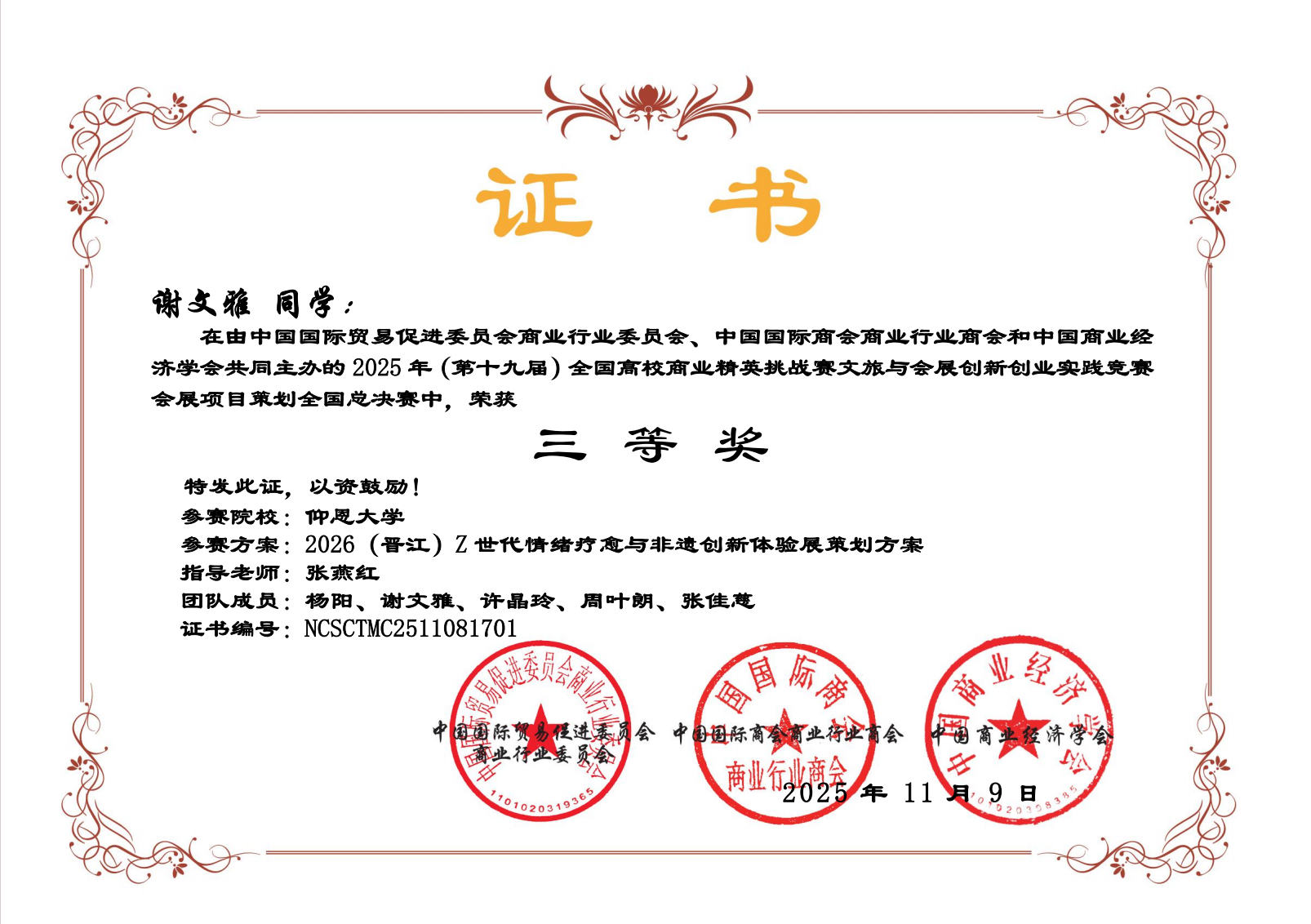 近日,第十九届全国高校商业精英挑战赛文旅与会展创新创业实践竞赛圆满落幕。经过激烈角逐,我院学子代表队斩获国赛一等奖1项、二等奖2项、三等奖4项。