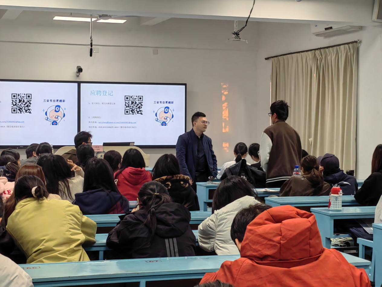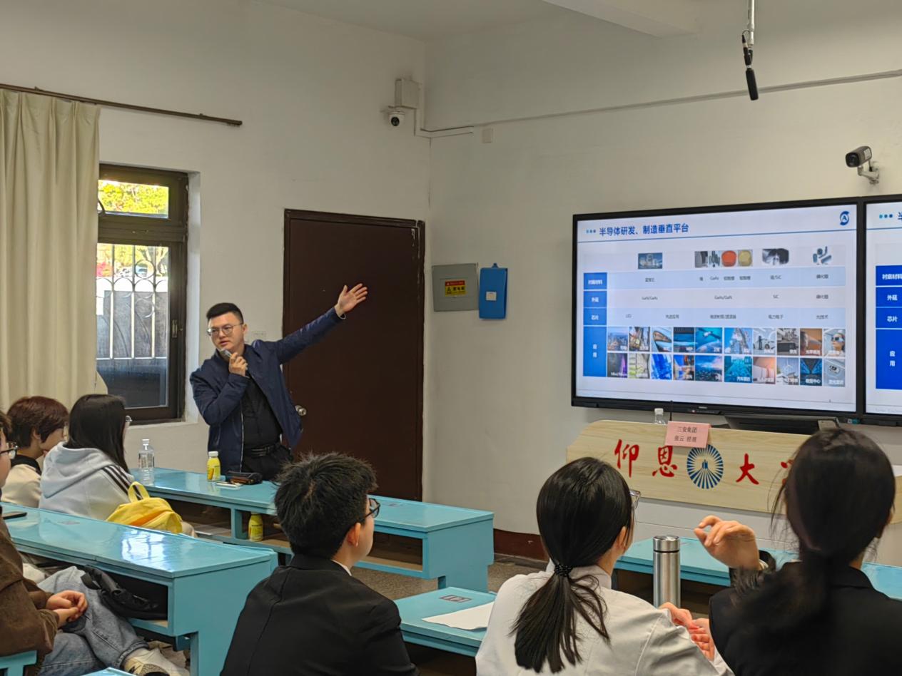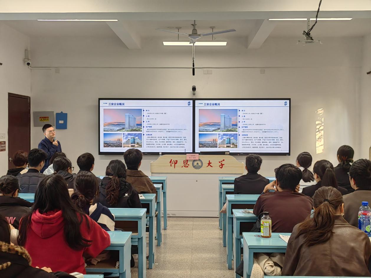 为精准对接半导体行业人才需求,搭建校企协同育人桥梁,助力应届毕业生明确职业方向、实现高质量就业,12月15日下午16时,三安集团经理张云受邀在pg娱乐电子游戏官网入口第一教学区共和楼203教室开展专场宣讲招聘会,22级与23级工业工程专业师生共同到场参与。